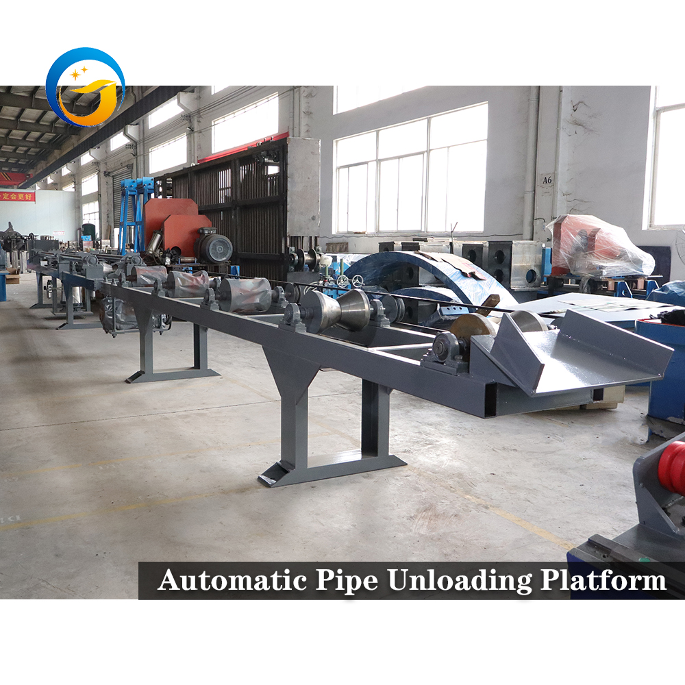 É uma plataforma de descarga de tubos cortados por serra computadorizada. Após a queda dos tubos, os trabalhadores podem verificar rapidamente a qualidade e embalá-los para a preparação do transporte.