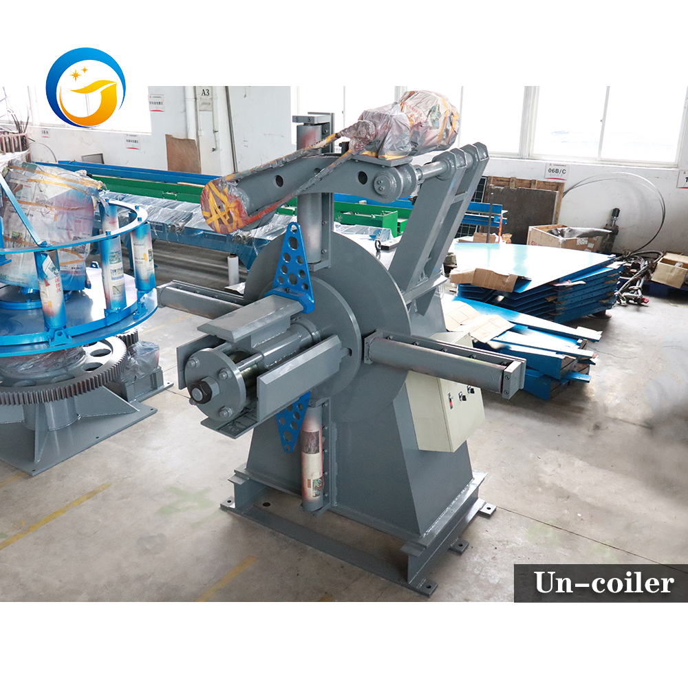 É usado para apoiar o rolo de tiras de aço e alimentar a matéria-prima para a linha de produção.