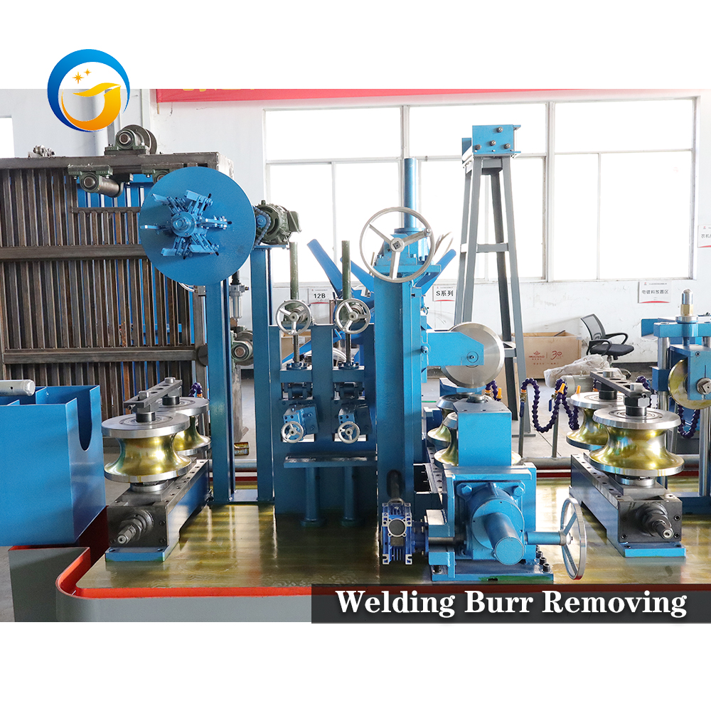 É o equipamento principal da linha de produção. Os rolos podem fazer a forma de tiras de aço em tubos de formas redondas e preparar a soldagem.