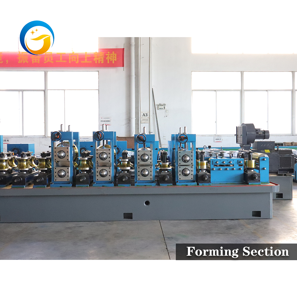 A linha de produção de tubos de soldagem de alta frequência pode produzir diferentes formas de tubos, como redondo, suqare, retângulo, oval, etc. A produção de diferentes formas é obtida alterando os conjuntos de rolos.