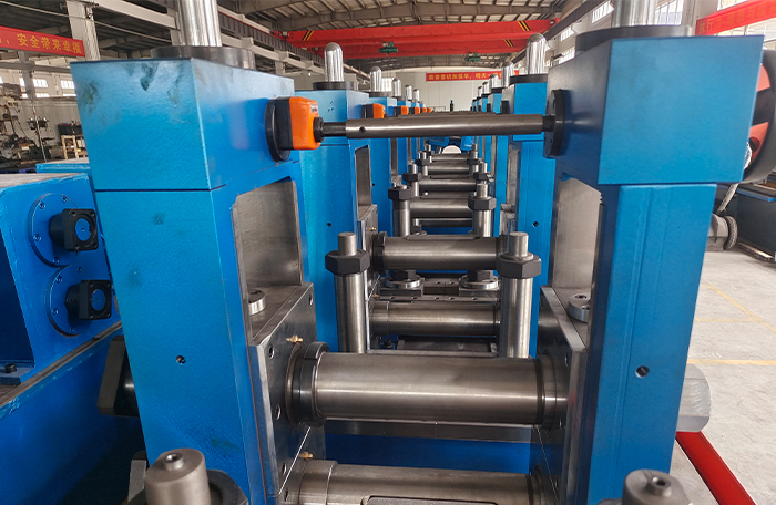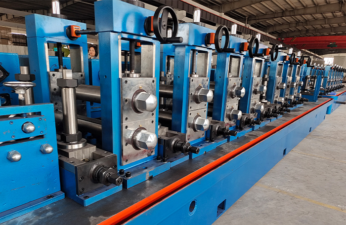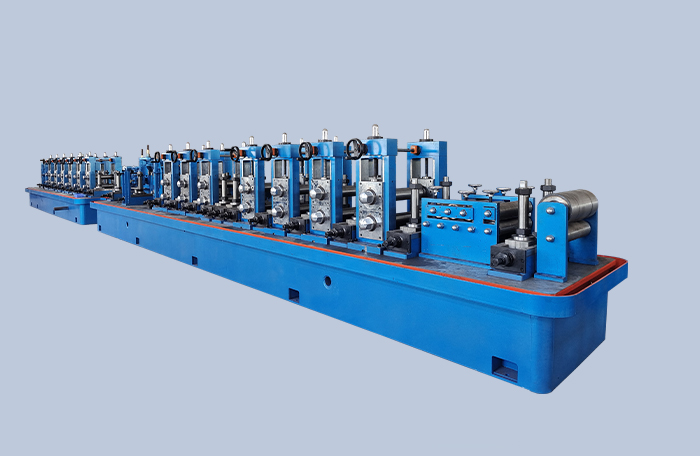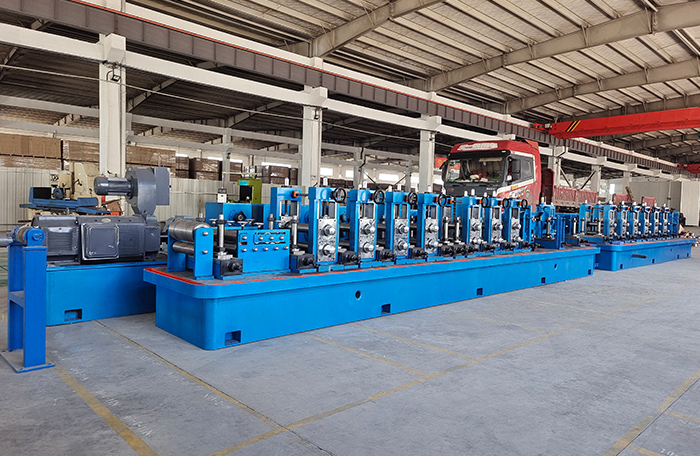 | Configuração da Máquina | 1. lado duplo desbobinador cortador de tiras 2.steel 3. acumulador de material tipo vertical máquina 4.forming e dimensionamento serra de corte 5.pipe (corte frio ou corte de atrito) plataforma de descarga 6.pipe 7.moldes de rolamento 8.high frequency aparelhos | ||||